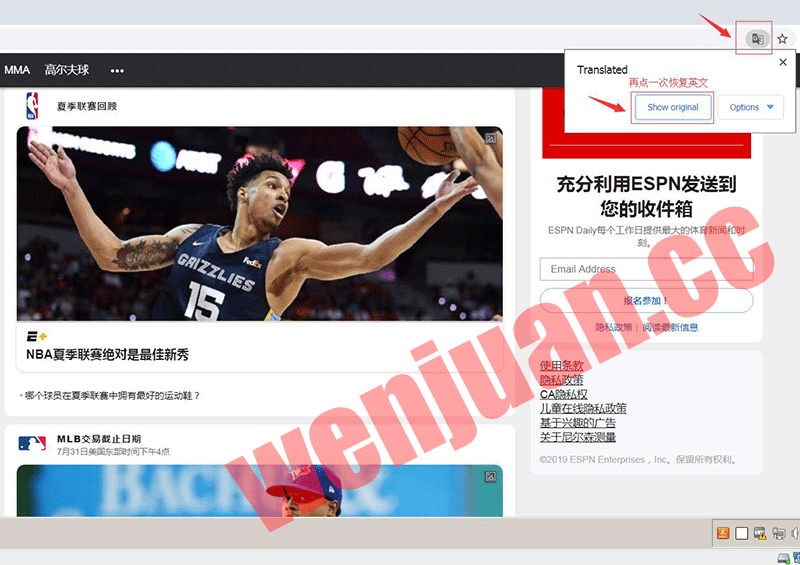 第七步:如图所示再点一次Show original恢复成英文原文界面