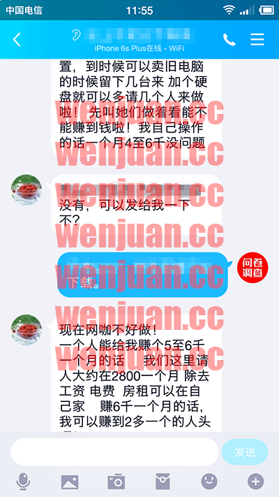 这是今天一位自身还在开网咖的同学的聊天记录,我确实有点不明白,按理说开网咖收入应该很好的,为何还要费神费劲来做网络调查问卷,这位同学说了,现在生意确实不太好做啊。这位同学现在想让自己网咖的两位收银来学着做网络调查问卷,我说要不要这么拼啊,不过话说回来,多一份收入就减轻一份负担,值得鼓励。今天上午刚写了一篇文章,词穷了,各位看聊天记录吧。
