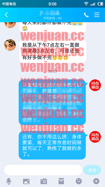今天早上起来看到昨天一位同学三点过发的信息,赶紧给回了,我再重申一遍,你态度认真可以,你对自己要求严格也可以,但是!请不要拿自己的身体健康开玩笑!没有谁可以一步登天,什么事情都是慢慢做起来的,记得上次我还说了一个刚了一晚上的同学,虽然你赚的是比一般同学多,不过绝不提倡这种做法!你就照自己正常作息时间来做就可以了,你只要学到了任何时候都可以做,只要全球问卷市场还在,当然这个大家都知道,有市场经济的地方就会有问卷调查需求,这个毋庸置疑,你永远都不愁没有做的!